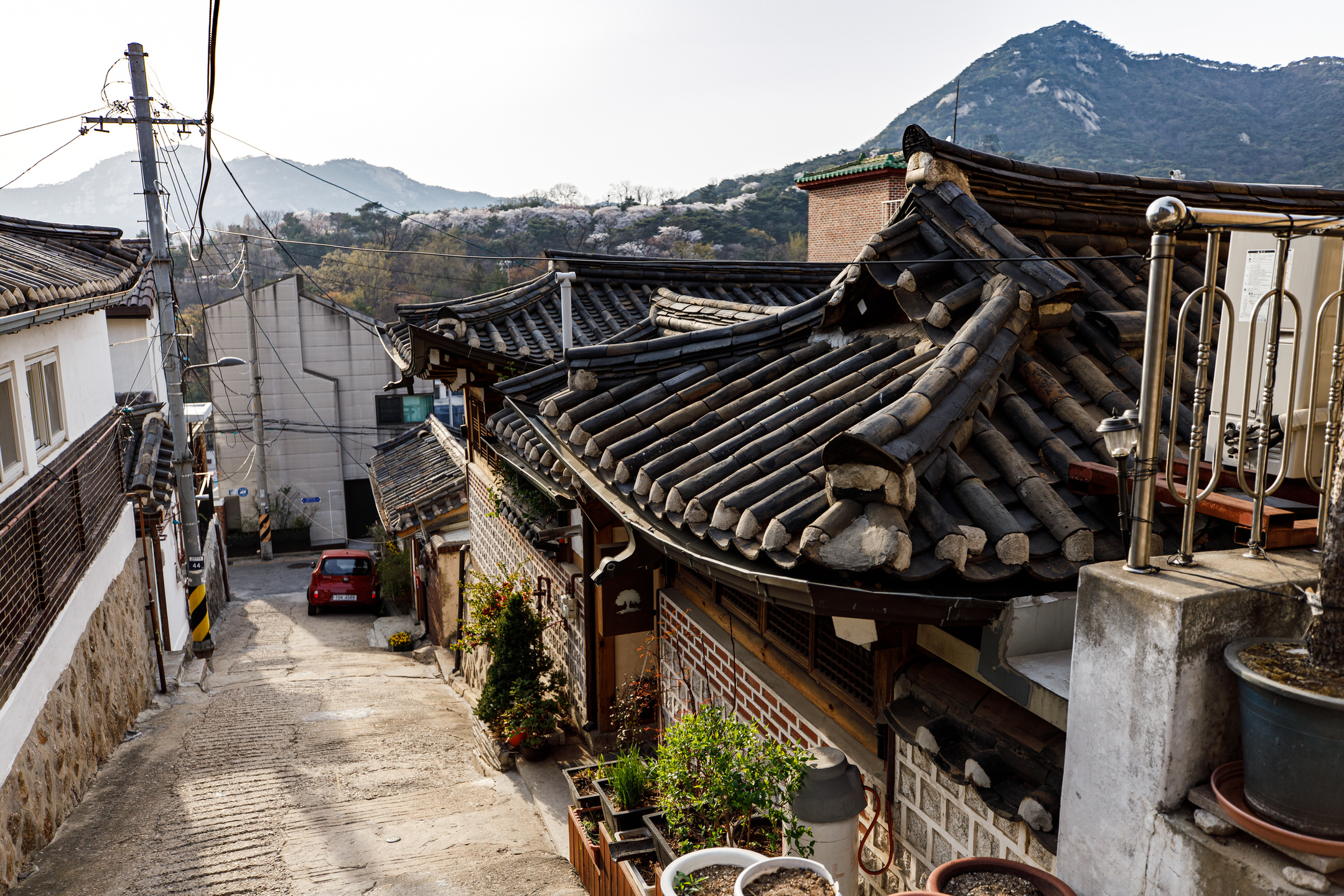Bukchon, or the “northern village”, is located to the north of Seoul between Gyeongbokgung Palace and Changdeokgung Palace. Its traditional houses are mostly built in a rectangle shape to retain heat in the winter, which is quite cold in this part of South Korea.