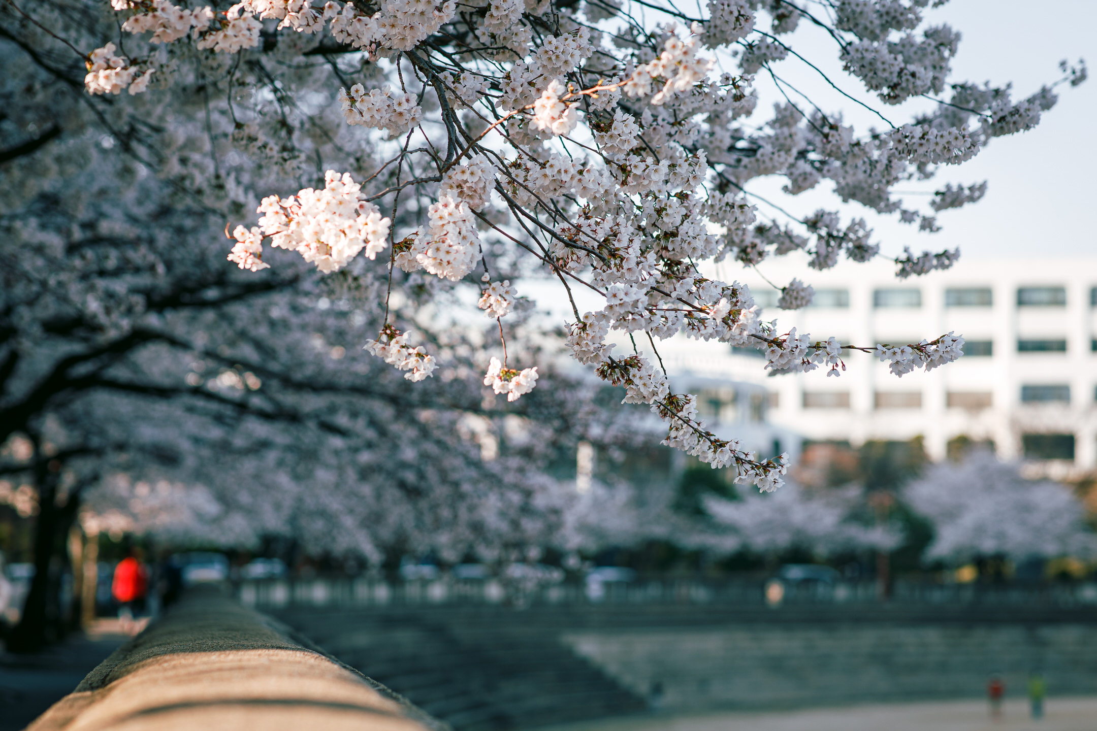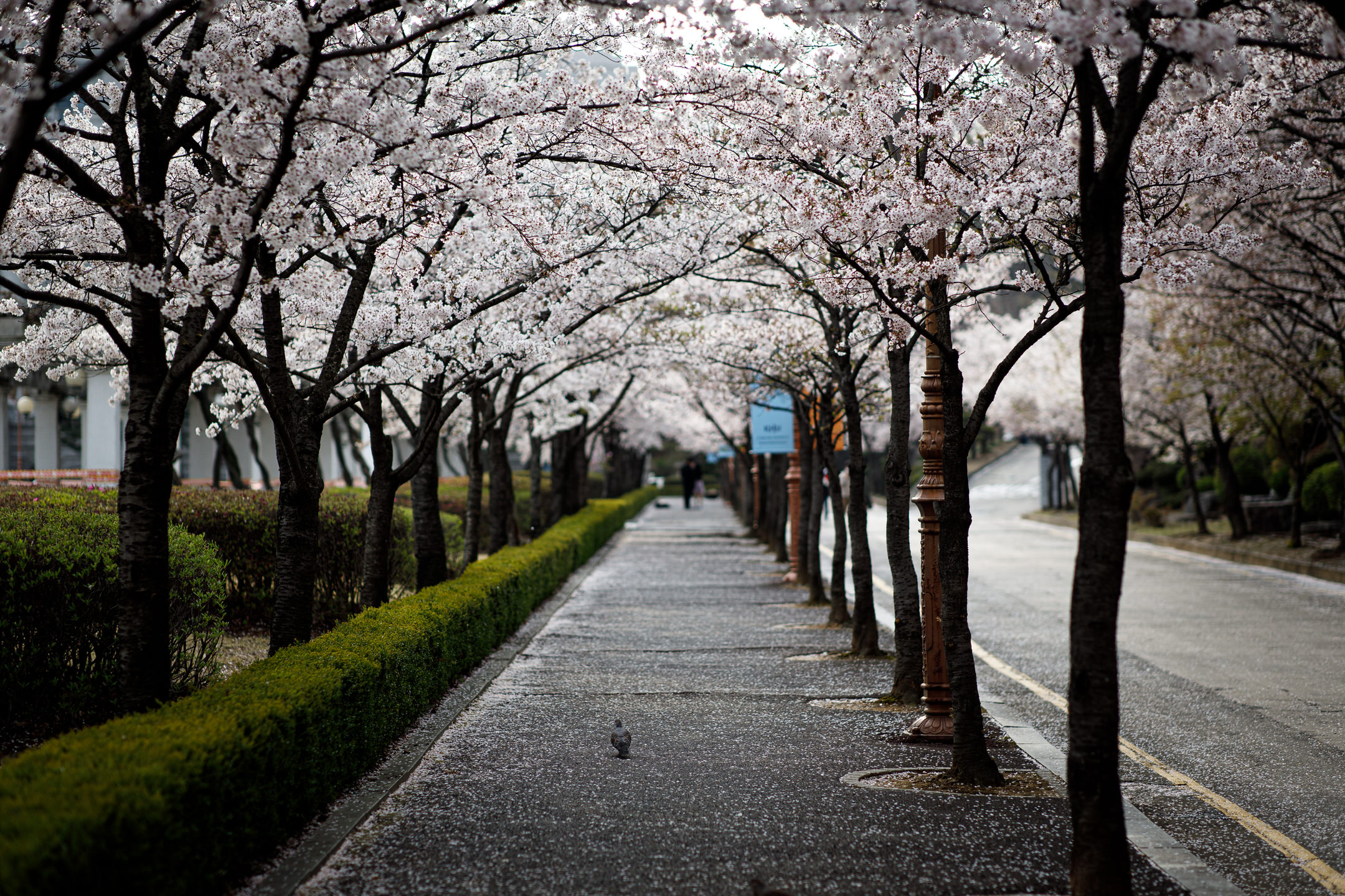 For the last two weeks, cherry trees have been blooming in South Korea in the region around Seoul. Kyung Hee University’s Global campus, which is scattered with these giants, offers some magical sights to its students and to those who meander around its buildings.